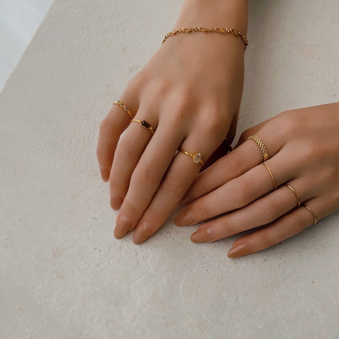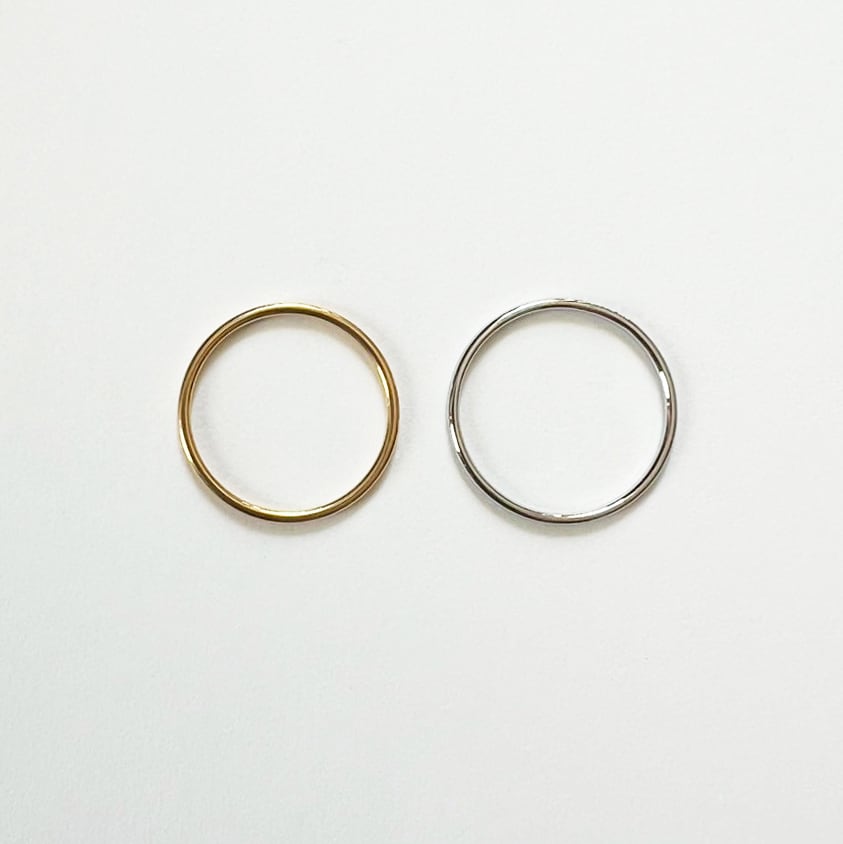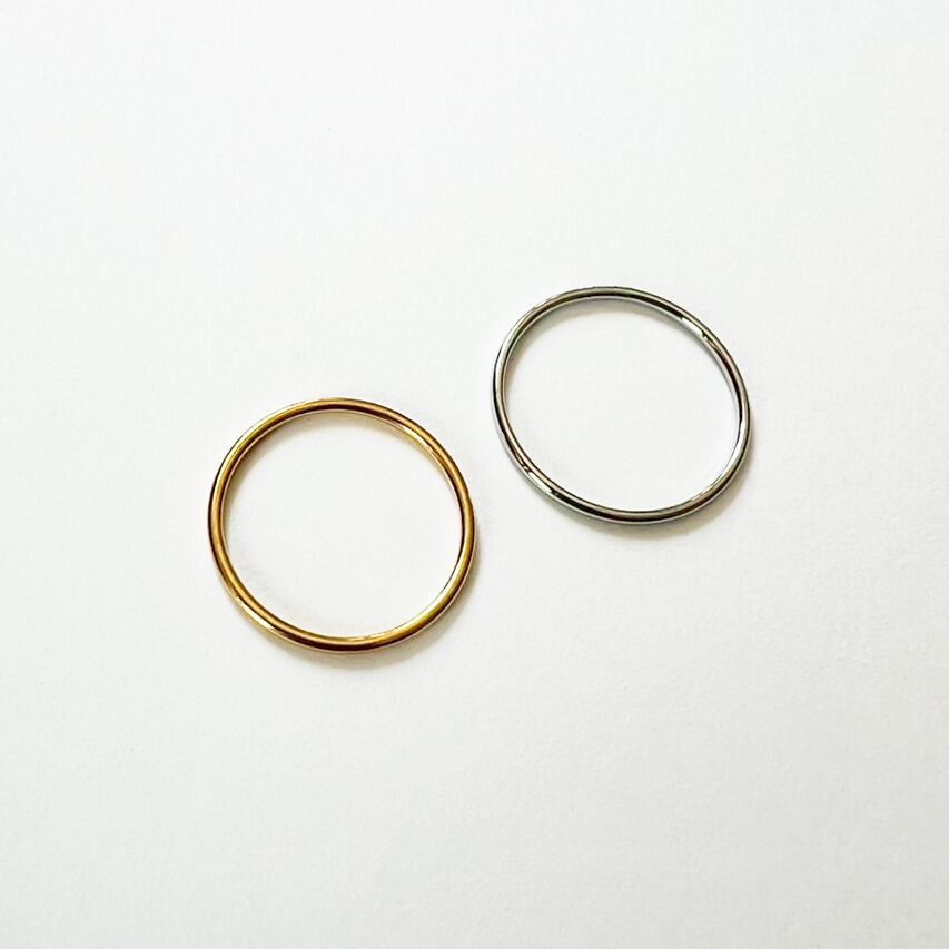 細く繊細なスキニーリング。耐久性のあるステンレス製で、日常使いにも安心です。