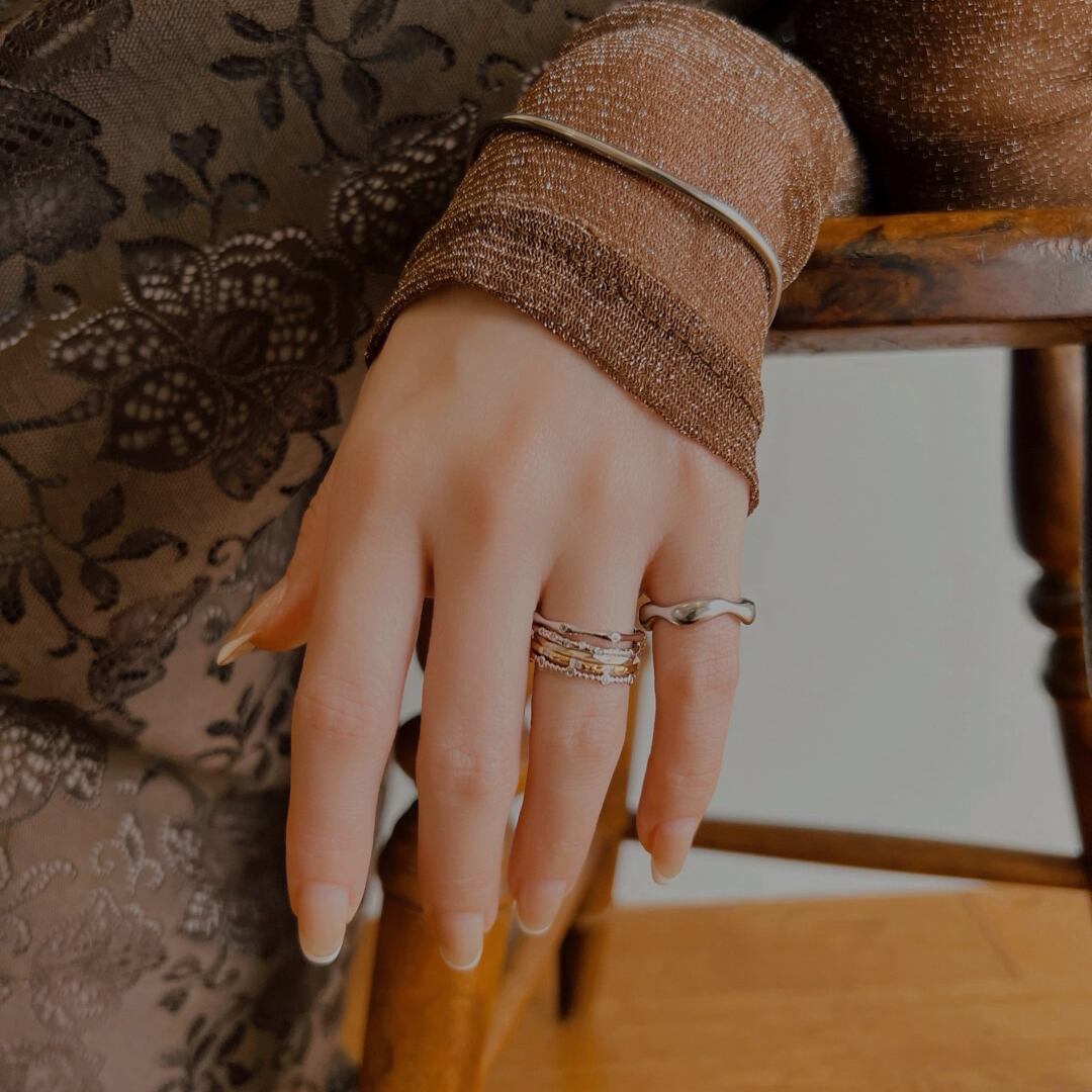 夜空にこぼれた光の粒を集めたような、繊細なリング。