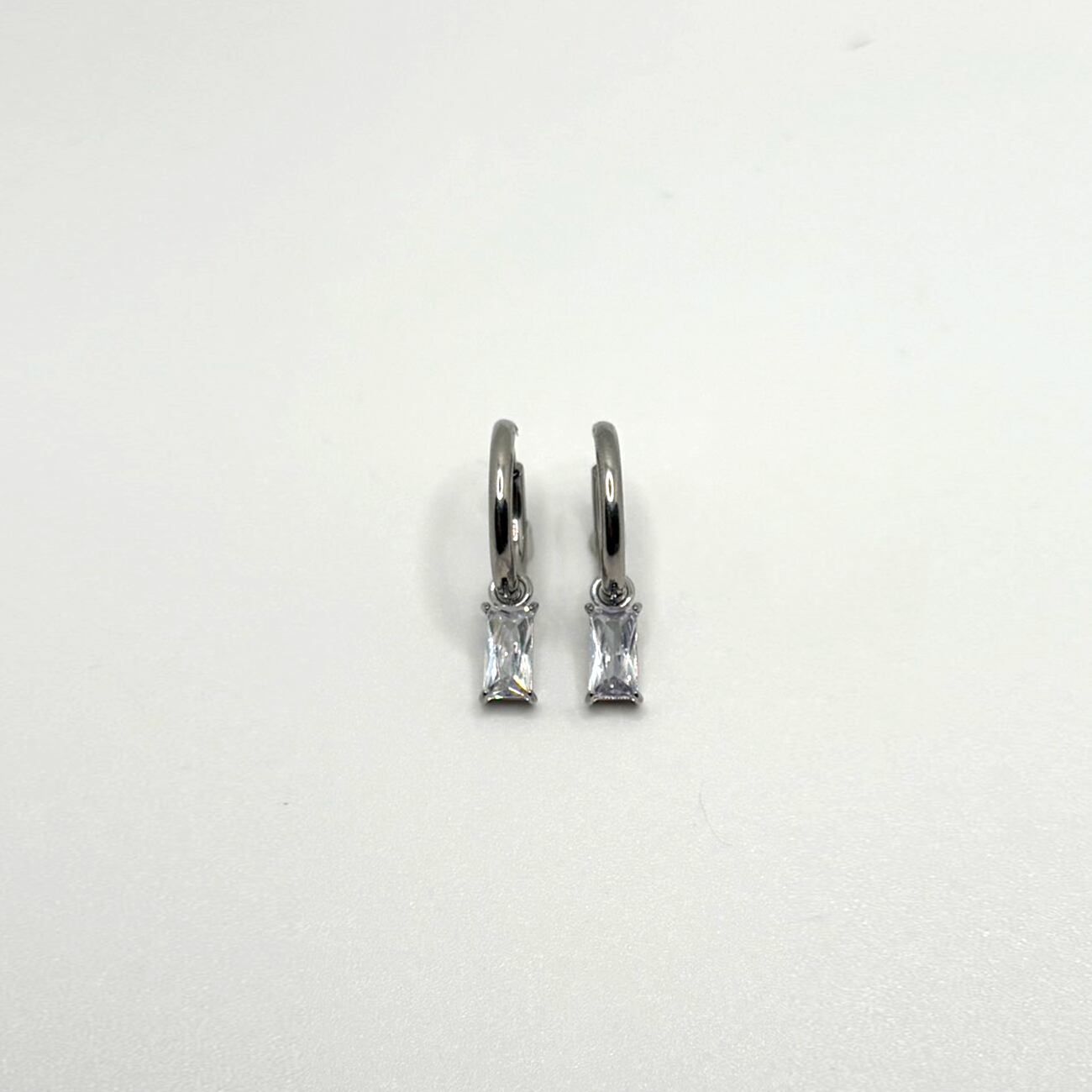 バゲットカットのビジューが軽やかに揺れ、顔まわりに上品で華やかな印象をもたらします。