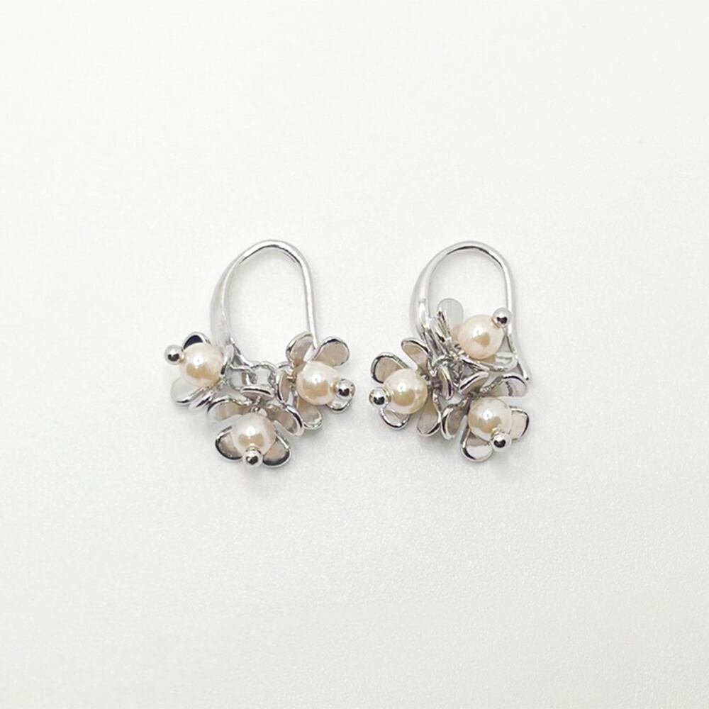 小さなフラワーモチーフを寄せてあしらった、可憐な立体感が魅力のピアス。