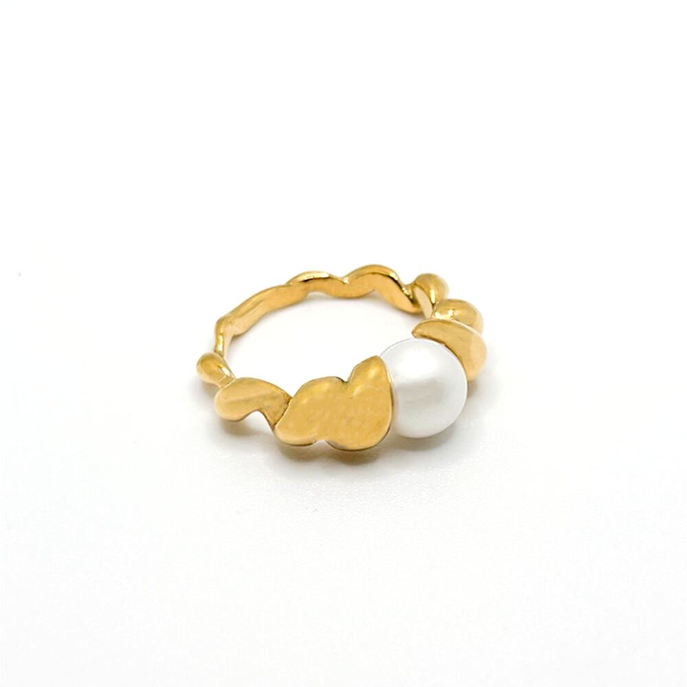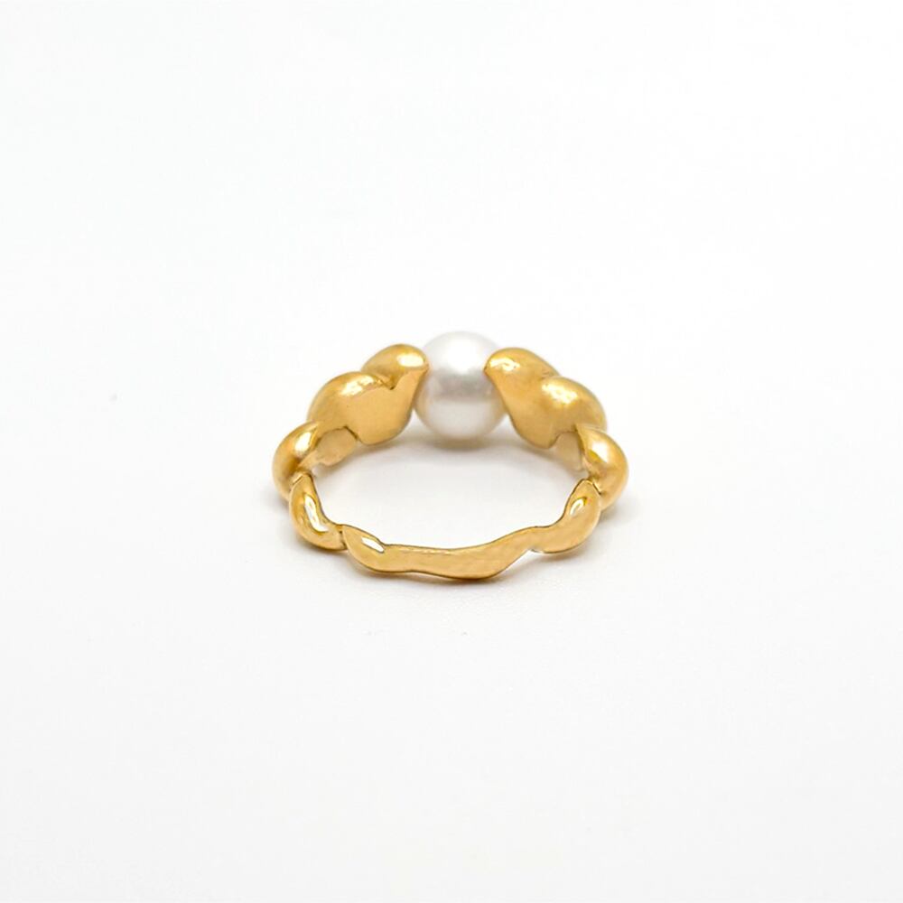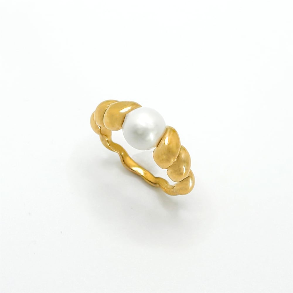 柔らかな起伏のあるラインに、存在感のあるパールを一粒あしらったリングです。
