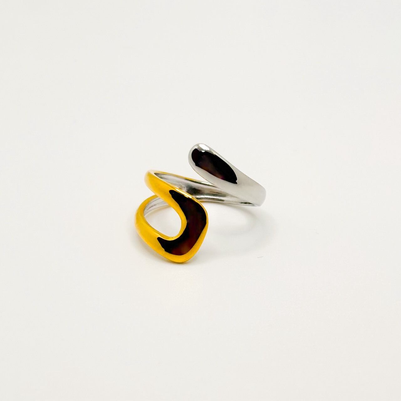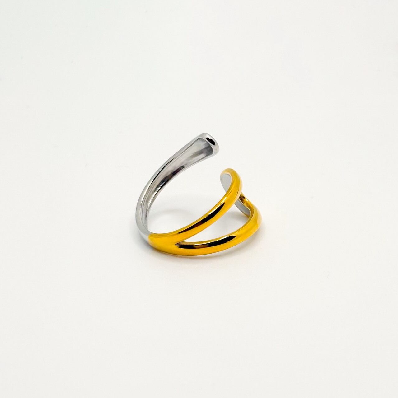 緩やかに描かれたカーブラインが印象的な、バイカラーデザインのリング。