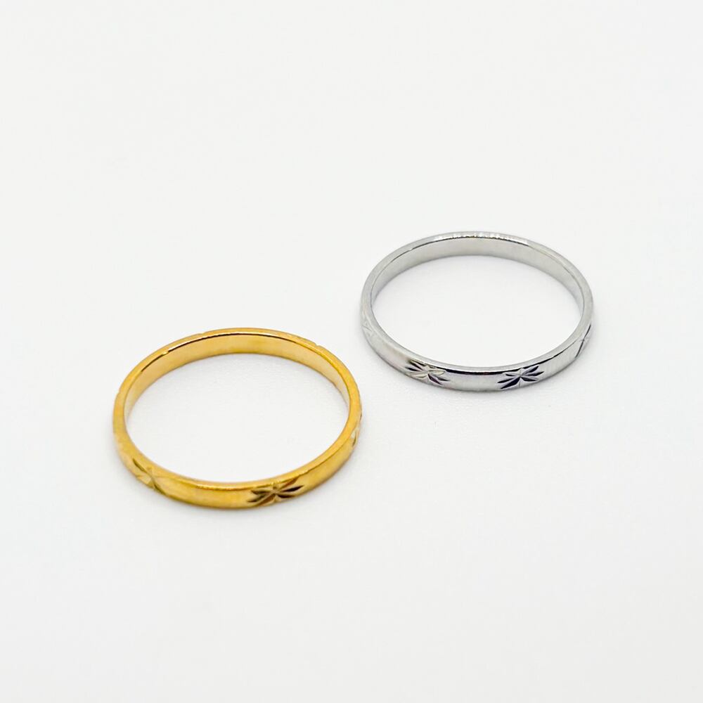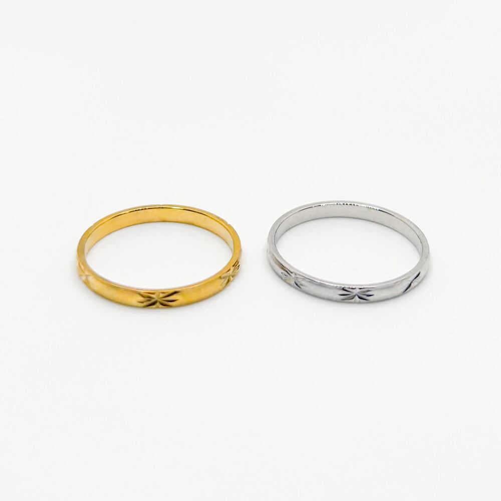 リング表面には星のような刻印が施され、シンプルな中にさりげない表情を与えています。