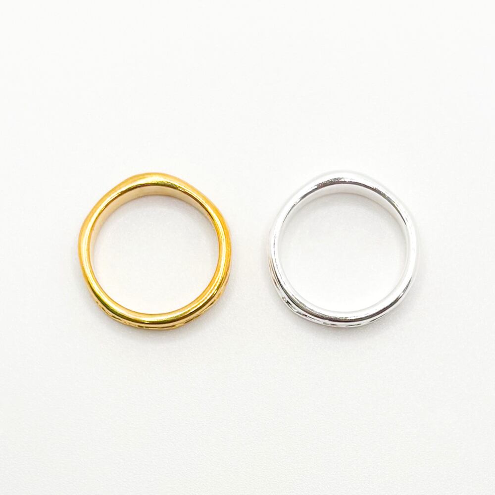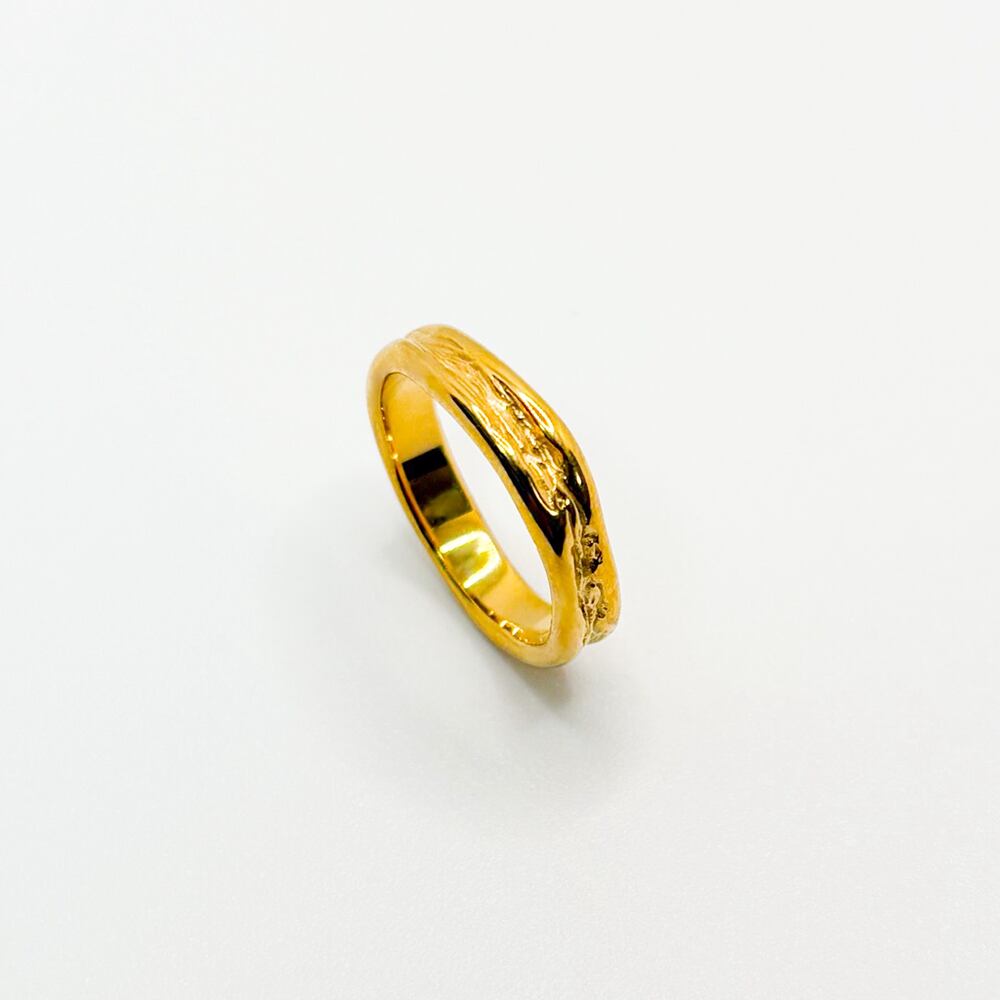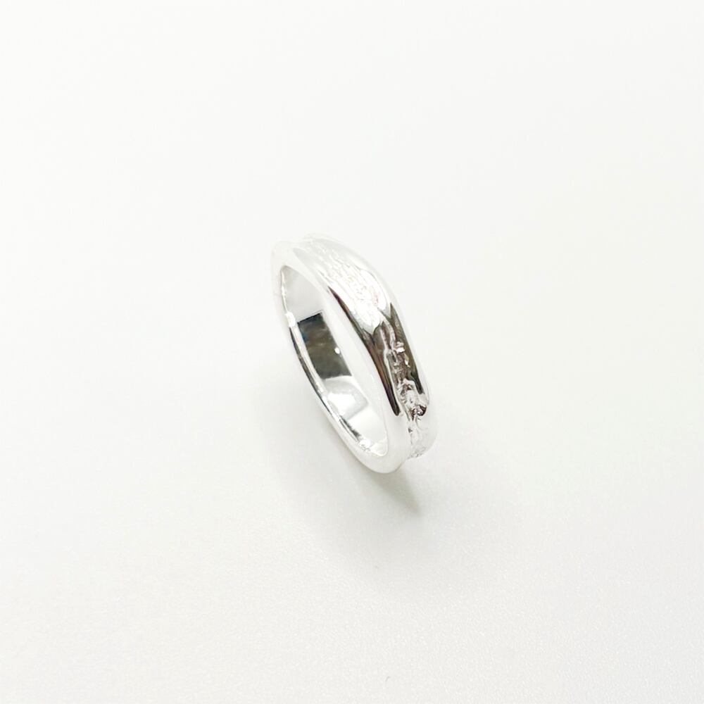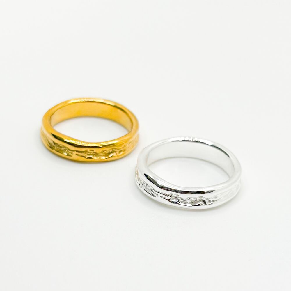 緩やかなカーブラインに、表情のある仕上げを施したリング。