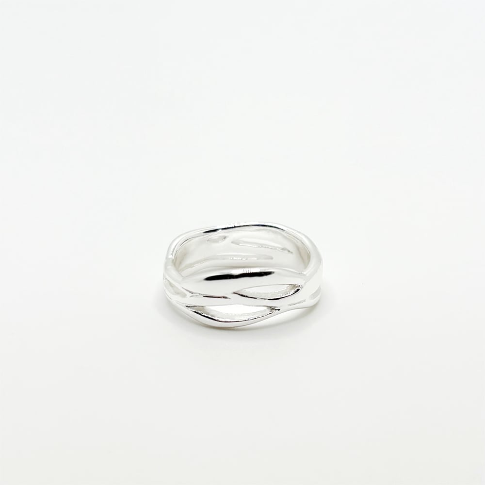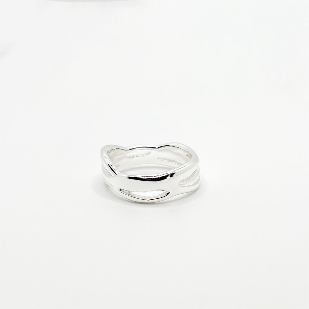 重なり合うラインがひとつのフォルムの中で緩やかな変化を描いたリングです。