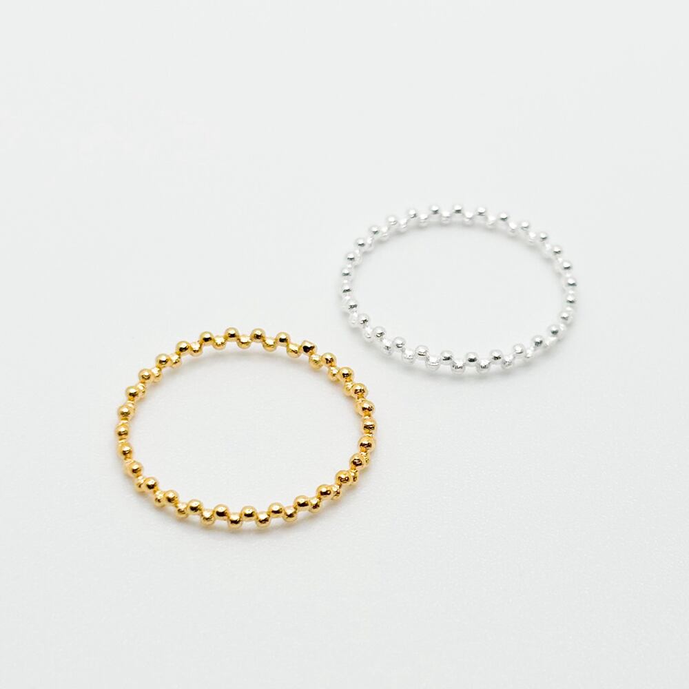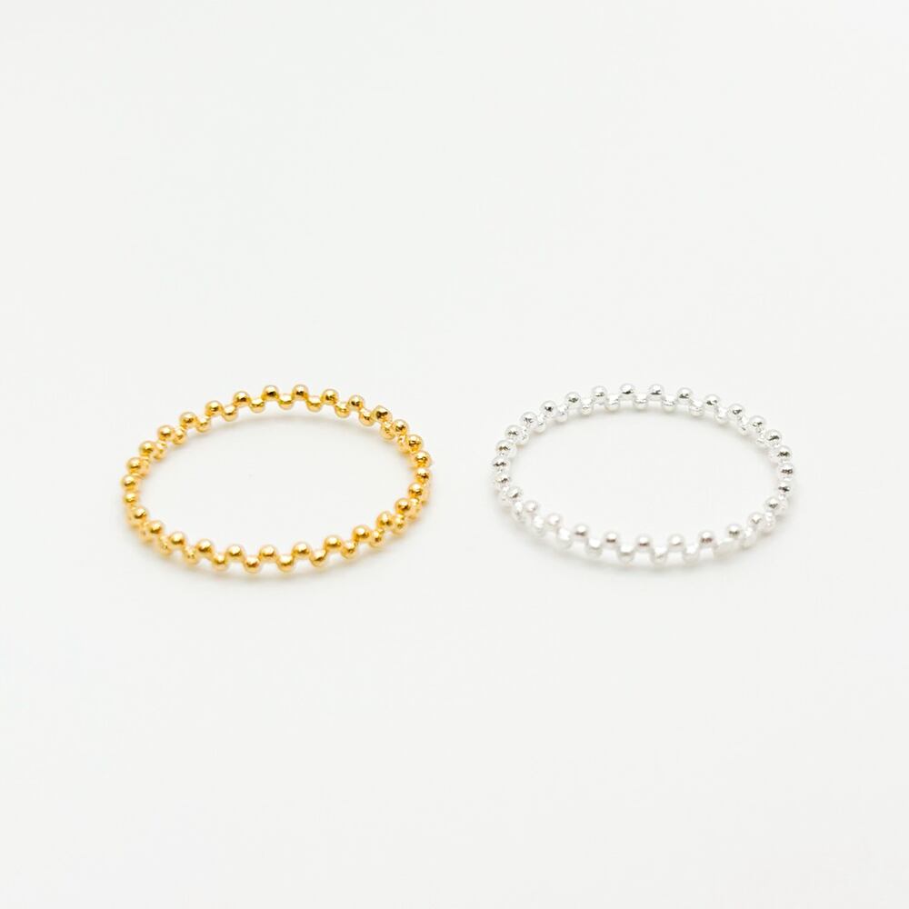 二本のラインが重なり合う、立体的なフォルムが印象的なリング。