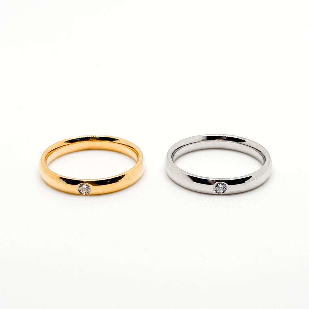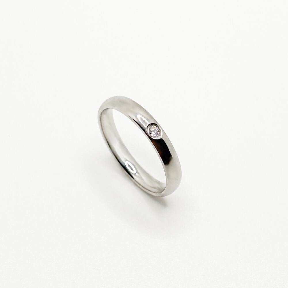 なめらかなラインに一粒のストーンを添えた、静かな存在感のリング。