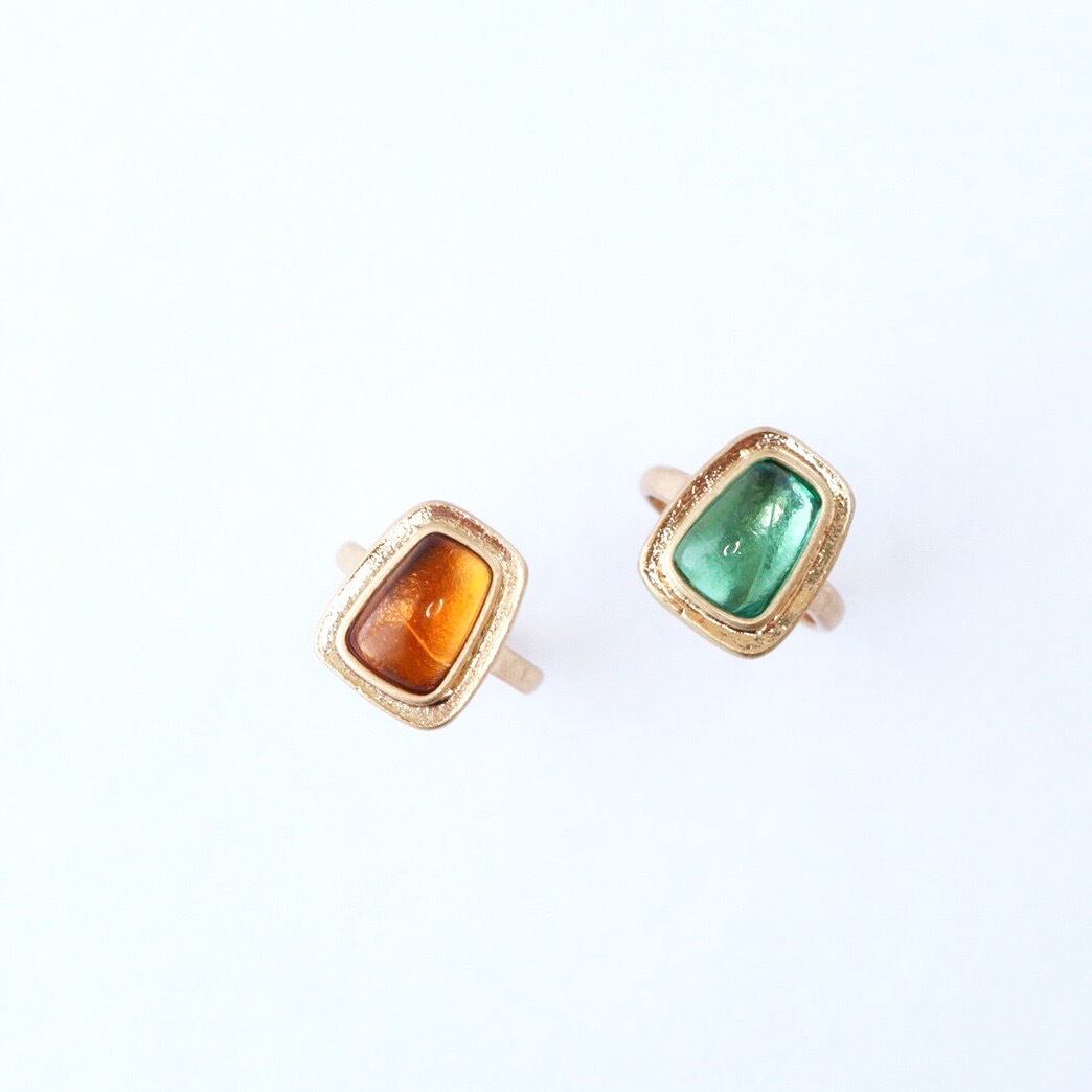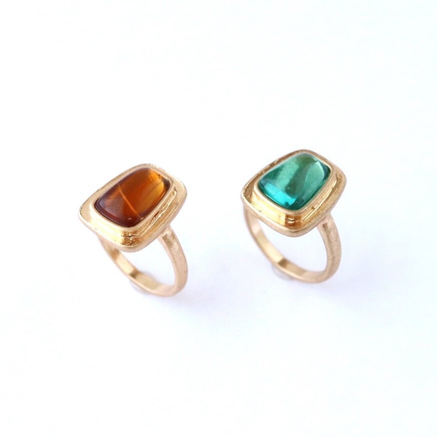 カラーの入ったストーンがおしゃれなリングです。1つ付けるだけで指先がおしゃれに◎