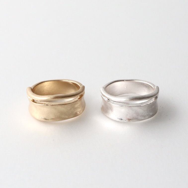 1本で2本付けている様にも見える、繊細なデザインが特徴のリングです。
