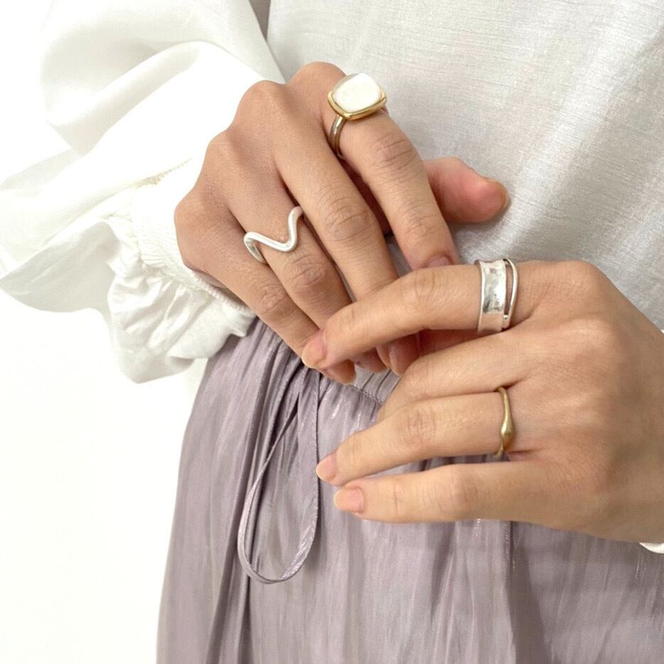 単品付けでも、細いリングと重ね付けをしても可愛いデザインです。