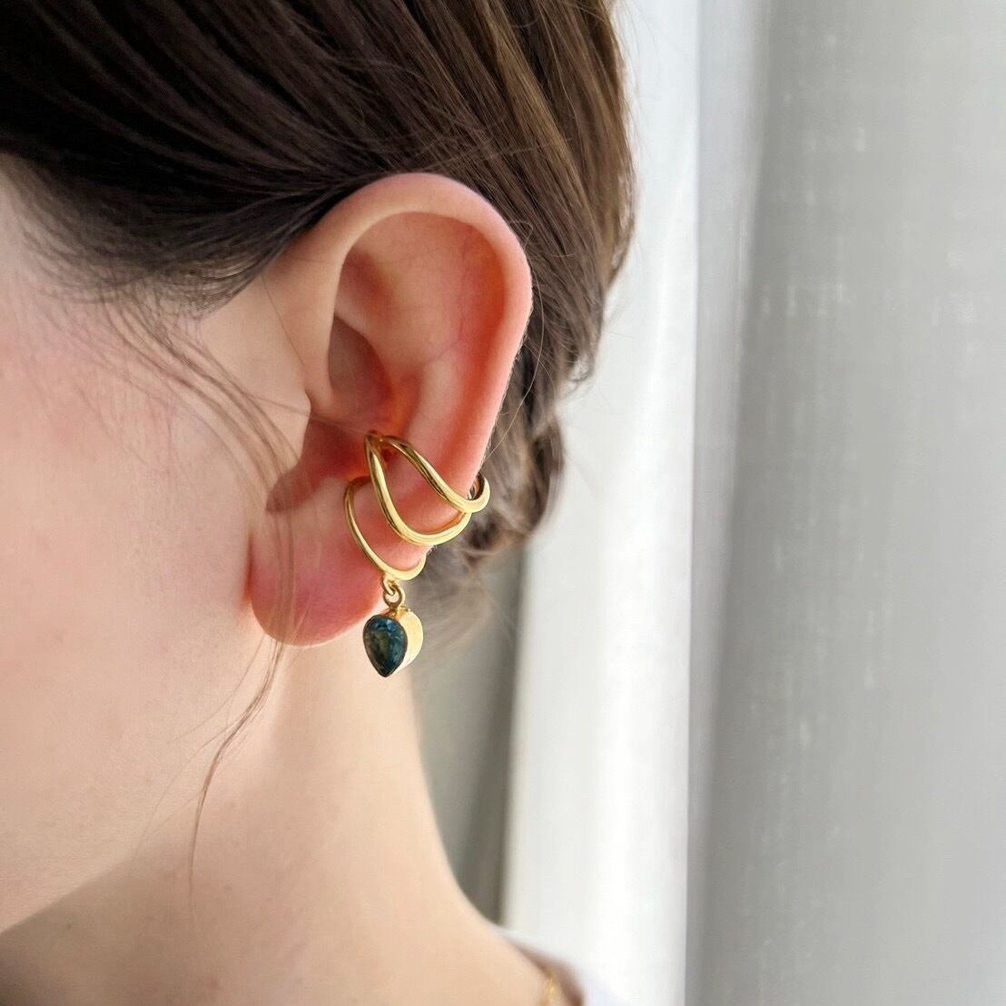 22KGP Turkey Leaf Like Stone Ear Cuff