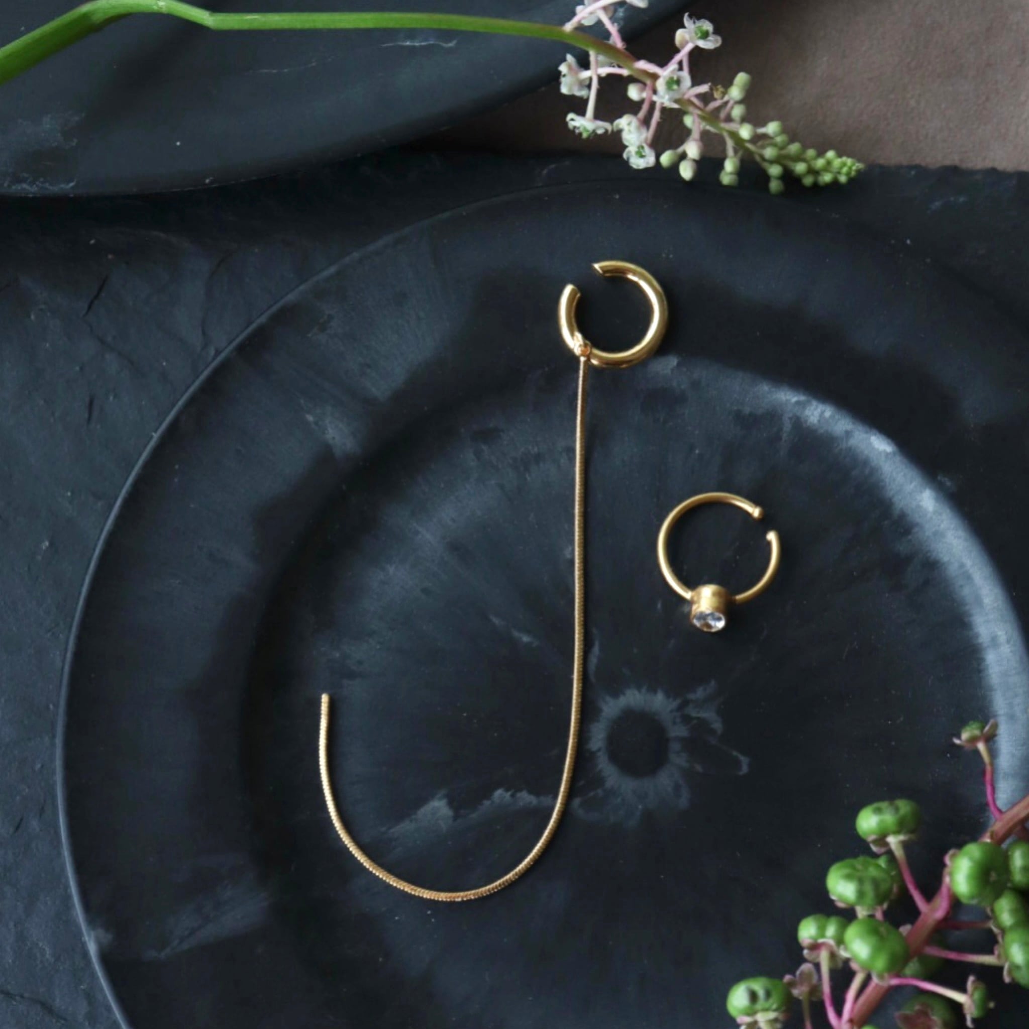 シンプルなリングにステンレスのスネークチェーンを合わせたイヤーカフ。