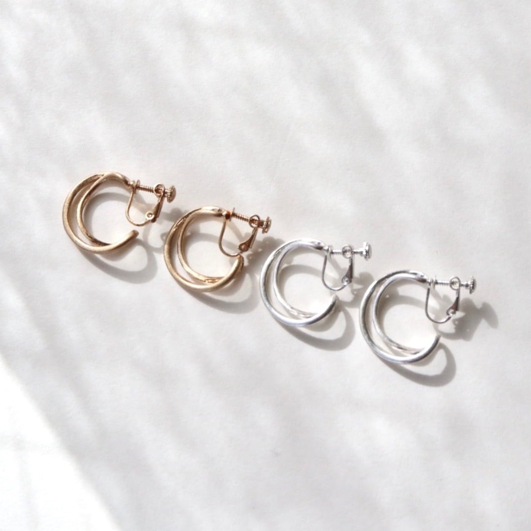 2連風大ぶりメタルフープイヤリングは、大人の女性らしさを引き出してくれるデザイン。
