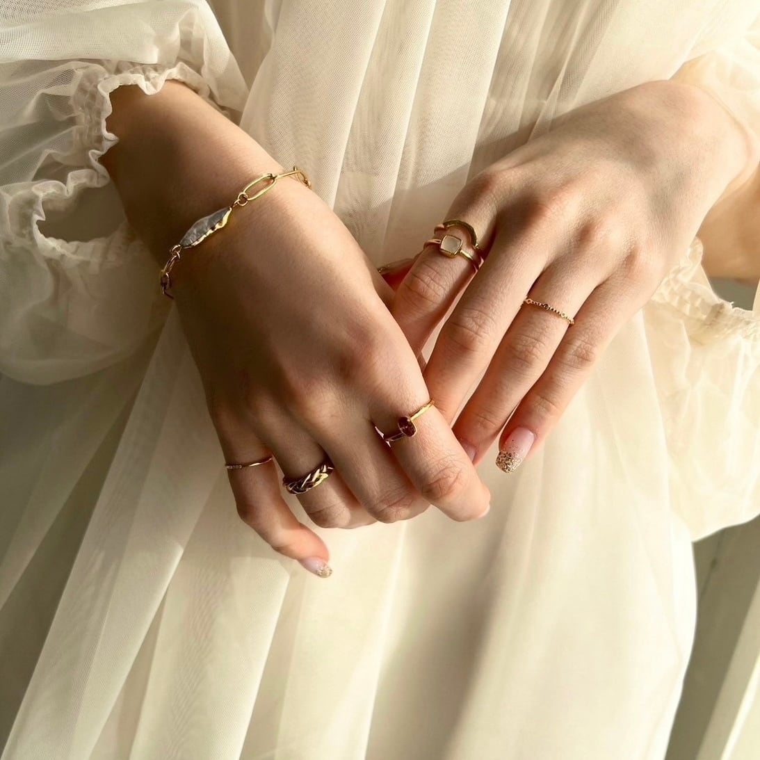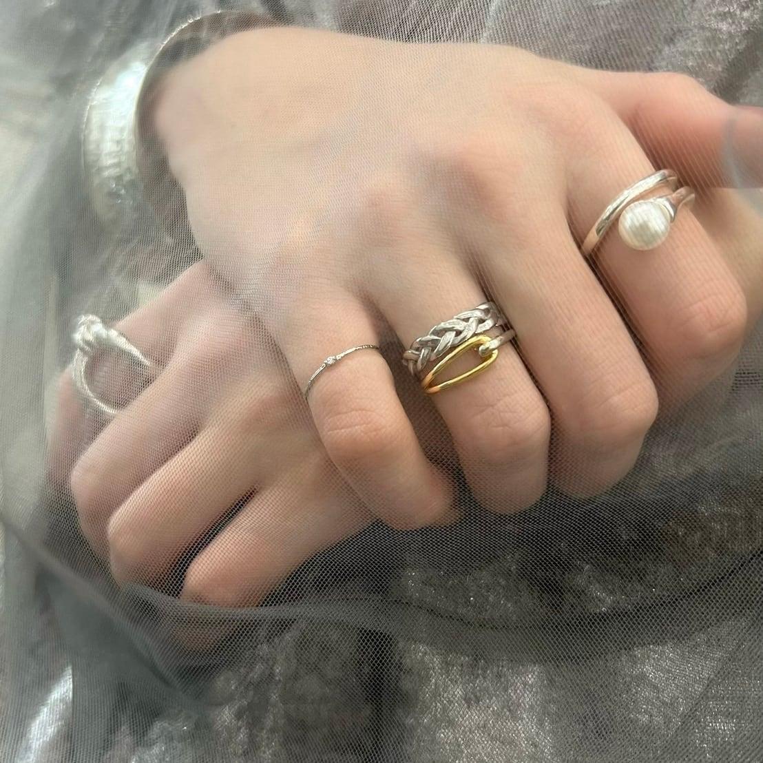 光沢感と柔らかなフォルムが生み出す優しいラインの編み込みデザインリング。