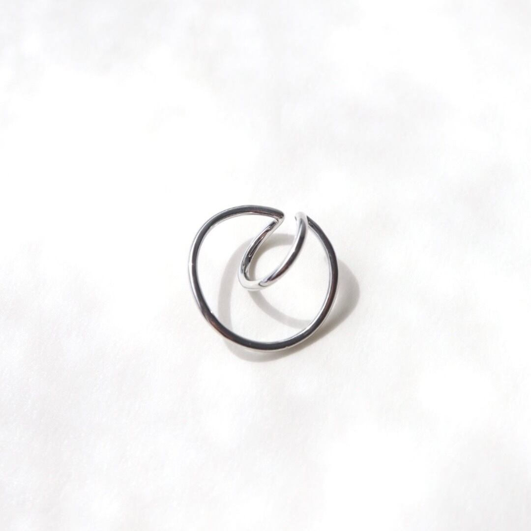 ラインの太さにこだわりながら大きめにデザインし、見る方向や着ける耳によって印象が変わるのが特徴のイヤーカフです。