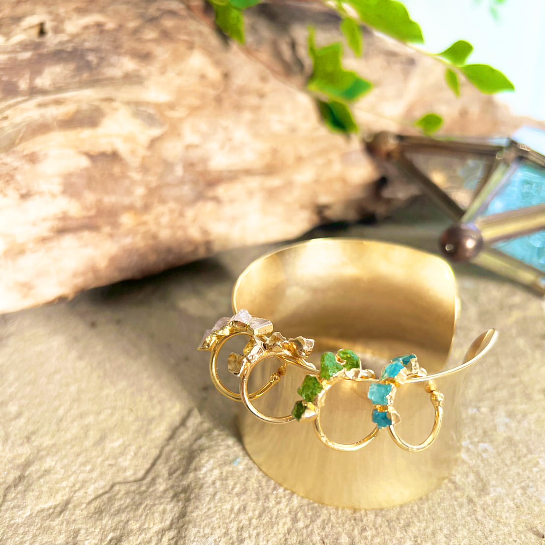 天然石のナチュラルなカッティングがポイントのイヤーカフ。